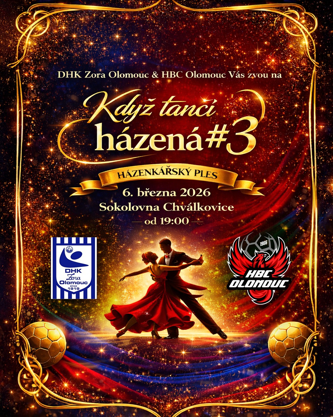 Čas letí a před námi je 3. ročník společného házenkářského plesu, který spojuje naše házenkářky DHK Zora Olomouc a kluky z HBC Olomouc. Pojďte si užít házenkářský svět v úplně jiném světle. Tentokrát se mužeme těšit na březnový termín, a to konkrétně 6. 3. 2026 sokolovna Chválkovice.